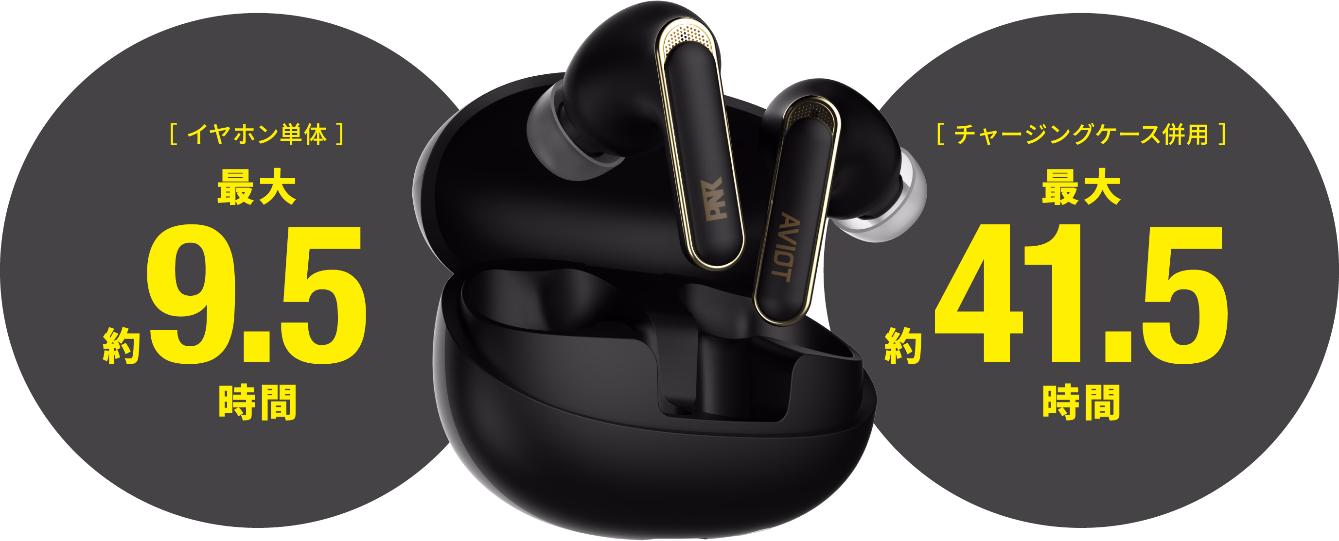 チャージングケース併用時 約41.5時間再生時間は使用環境や接続方法により変動します。