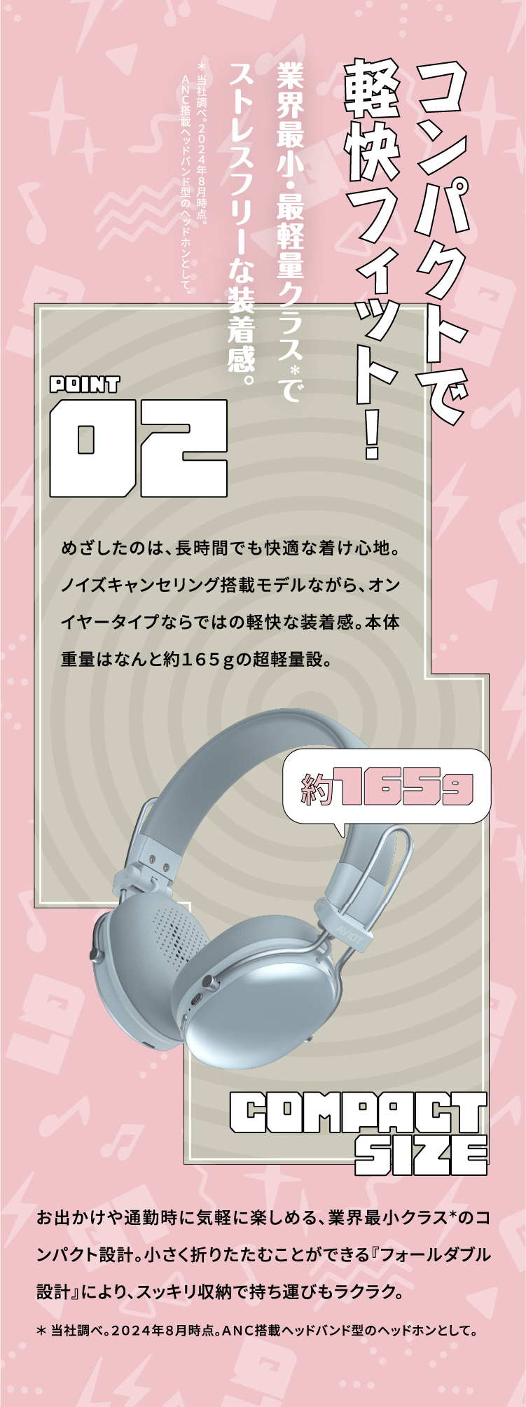 コンパクト&軽量設計による軽快な装着感。優れた音質、長時間使用可能なスタミナ、使いやすい操作性、こだわりのデザインに加え、アダプティブハイブリッドノイズキャンセリングを搭載。